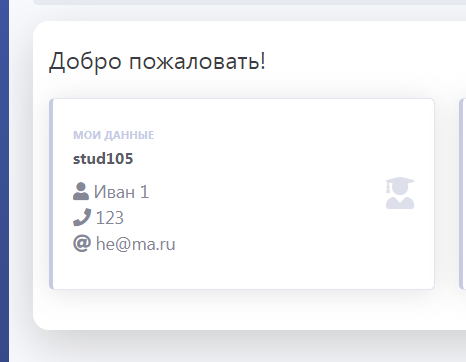 Личный кабинет студента первая страница, на которую Вы попадете при обучении.
