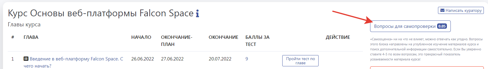 Перейти к вопросам самооценки можно со страницы курса
