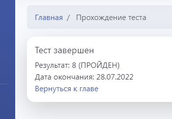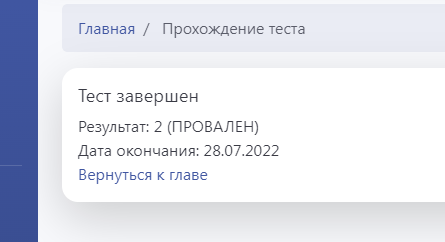 В конце теста Вы увидите количество верных ответов и узнаете, успешно ли прошли тестирование