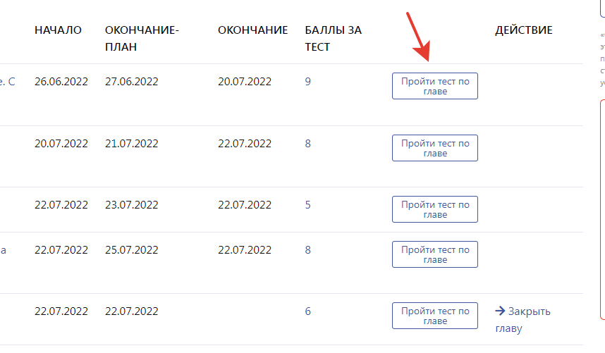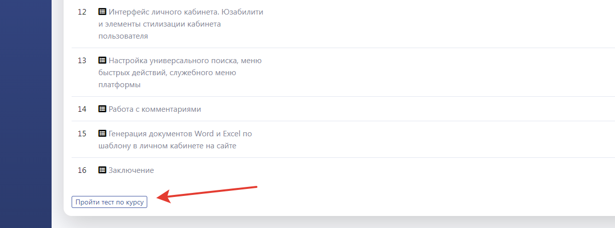К тесту можно приступить по ссылке со страницы курса либо главы.