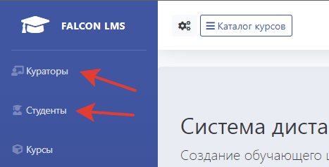 В демо-версии Falcon LMS студенты могут зарегистрироваться и сами, однако куратора может создать только менеджер.