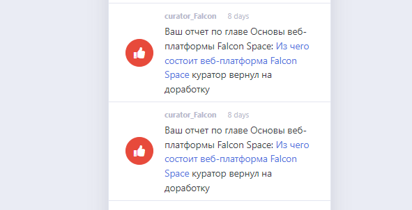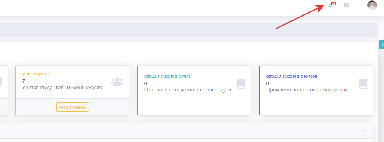 Все пользователи площадки получают уведомления по различным событиям, связанным с ними (открыта новая глава, студент прислал отчет и т.д.).